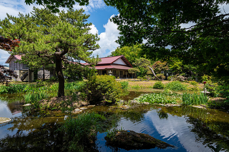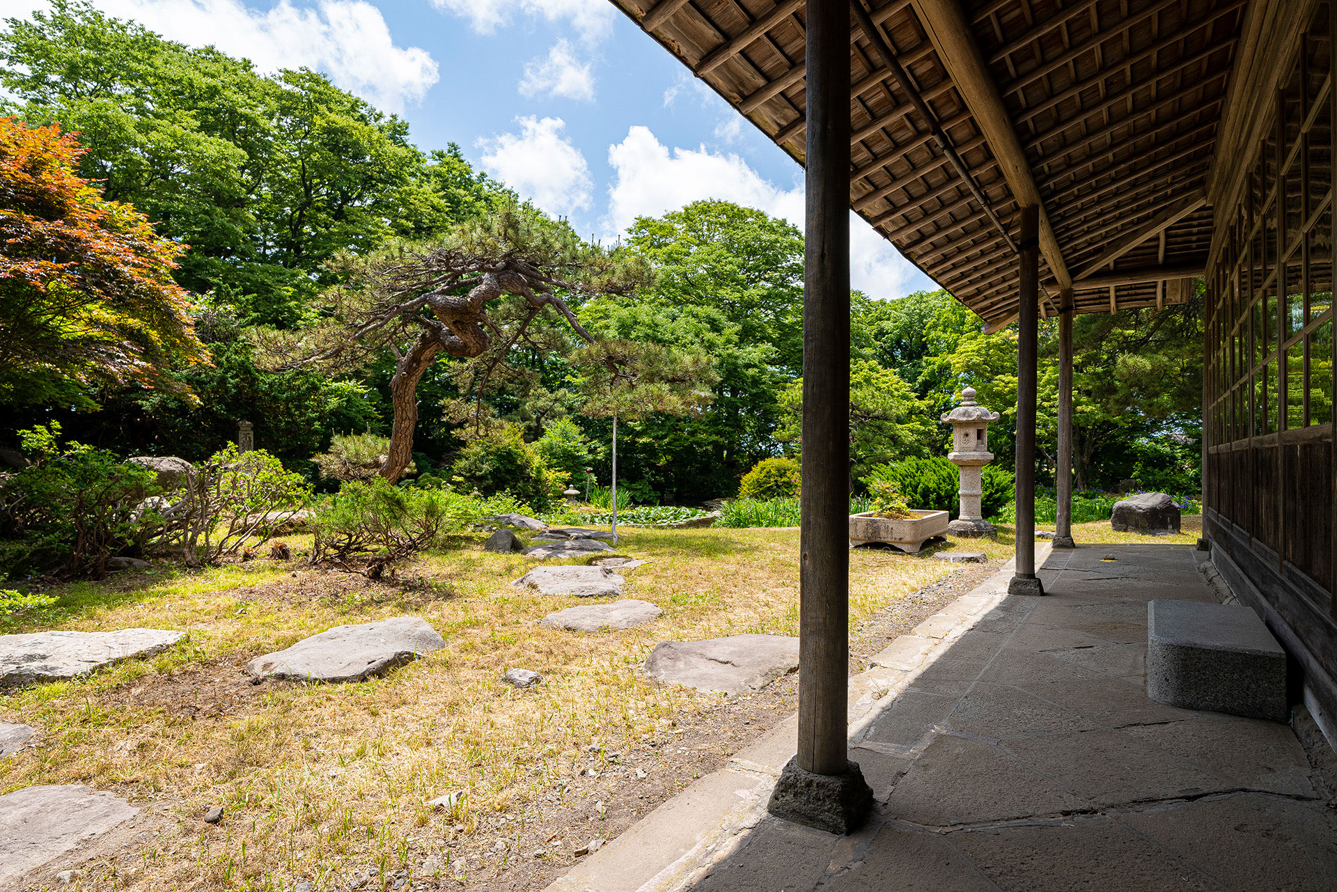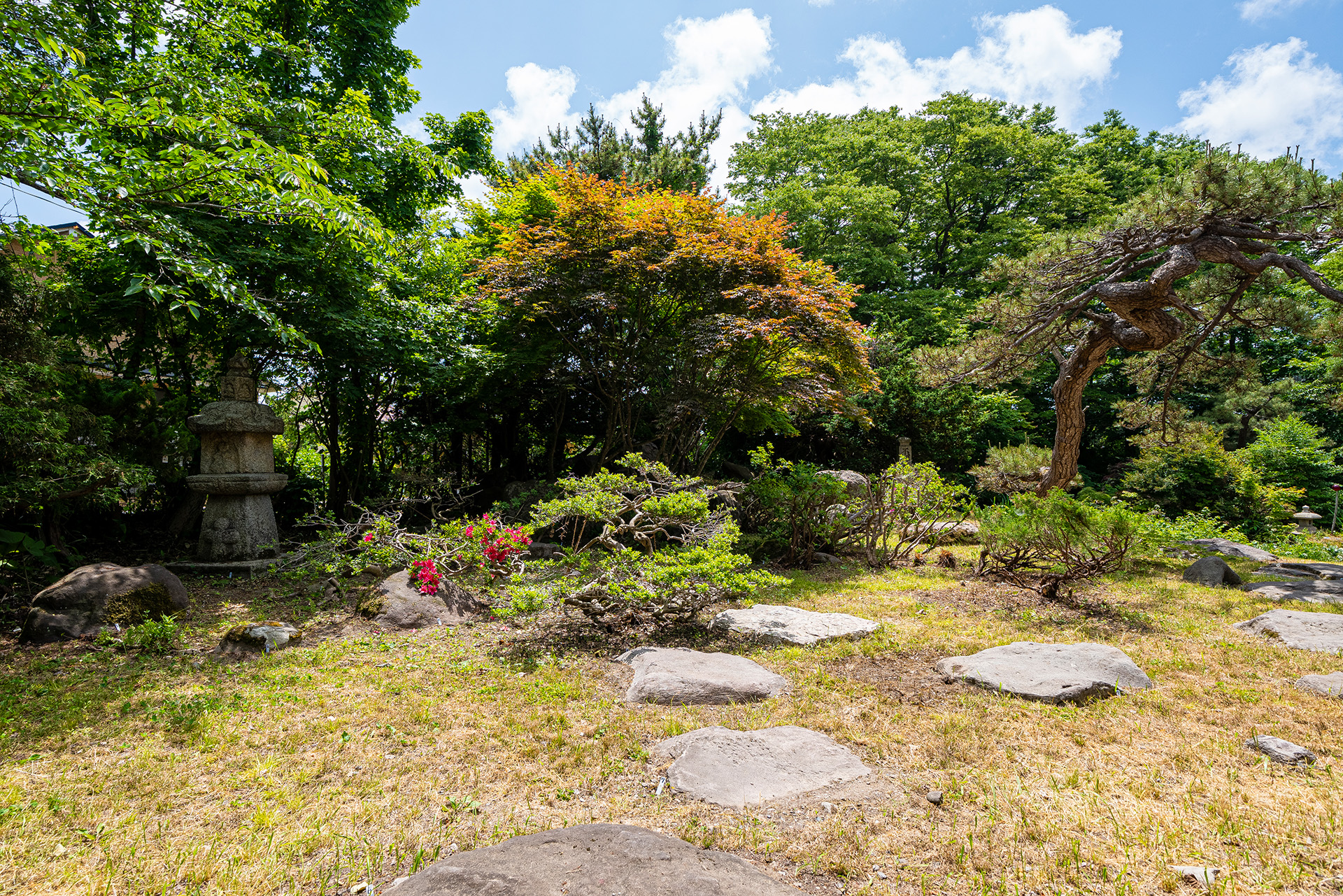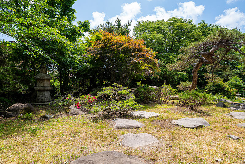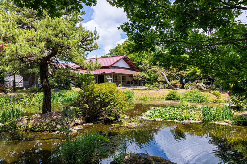 主屋に付随する大石武学流庭園、離れに付随する枯山水庭園、池泉庭園の3種類から構成される奥津軽屈指の名園です。離れ付随庭園は、宮越家が所在する尾別(おっぺつ)のアイヌ語解釈「静かに川の流れるところ」から、静川園と命名されました。