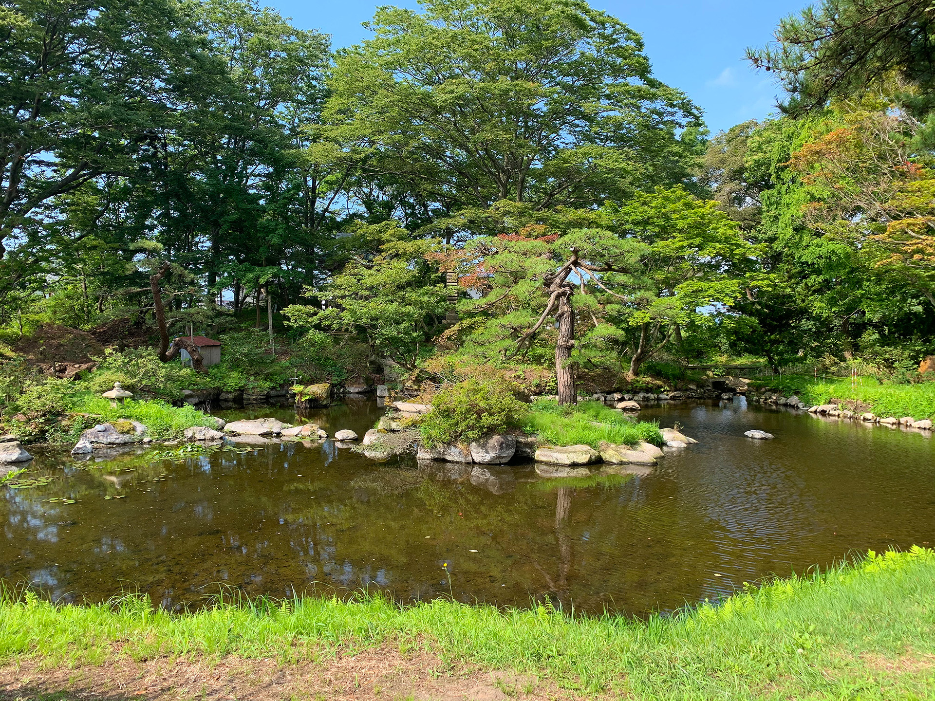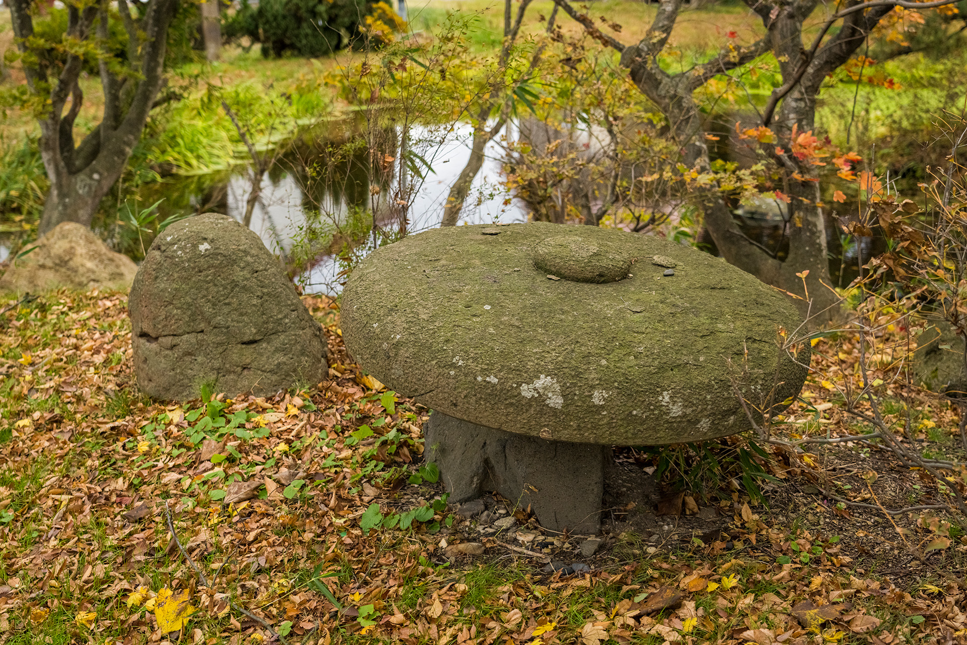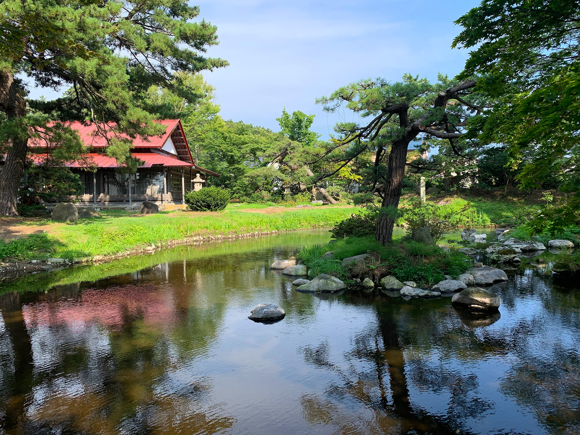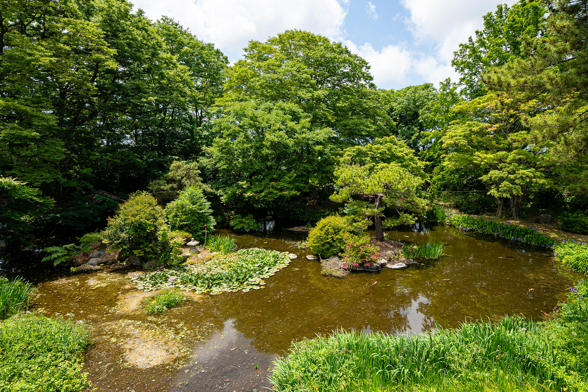 主屋に付随する大石武学流庭園、離れに付随する枯山水庭園、池泉庭園の3種類から構成される奥津軽屈指の名園です。離れ付随庭園は、宮越家が所在する尾別(おっぺつ)のアイヌ語解釈「静かに川の流れるところ」から、静川園と命名されました。