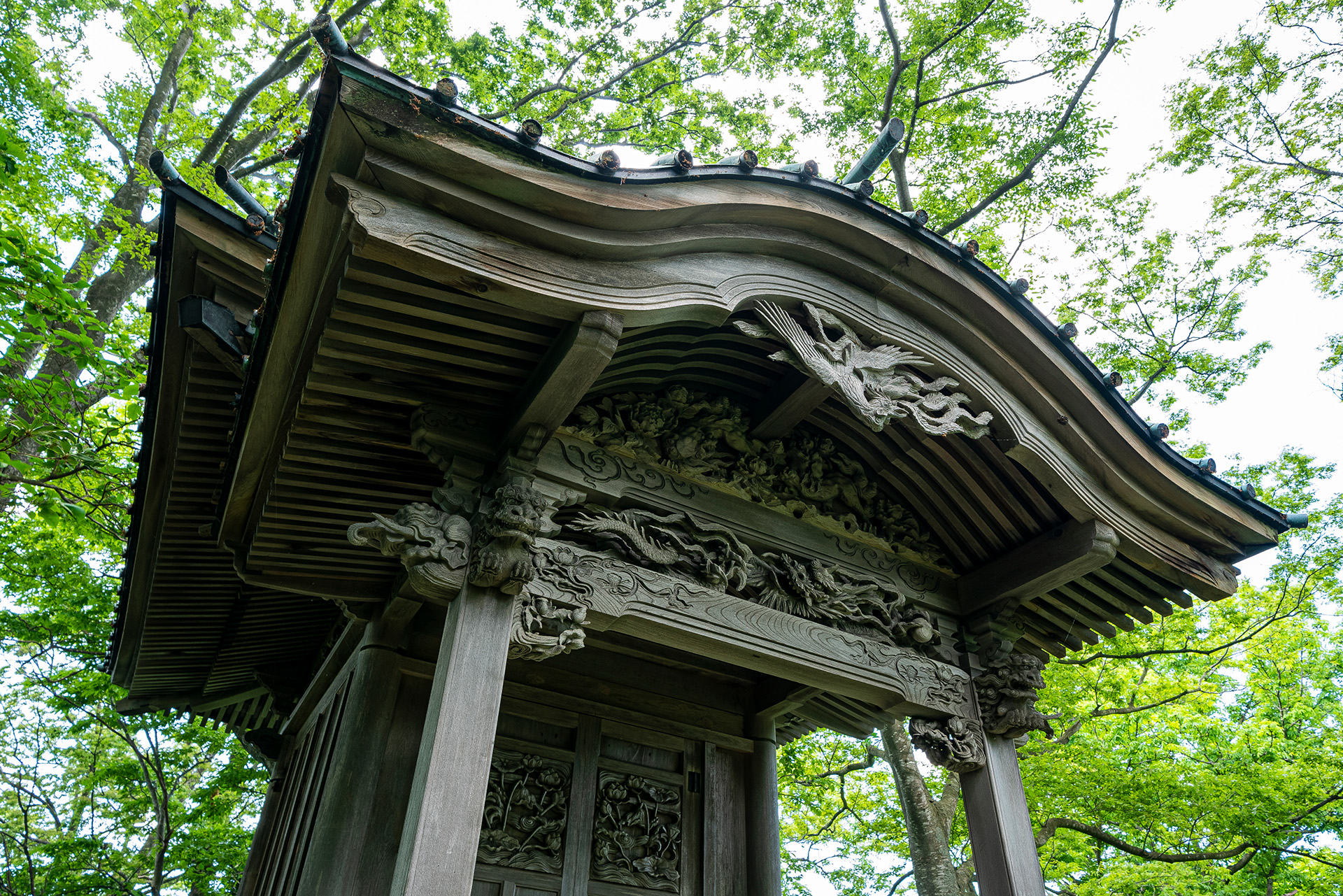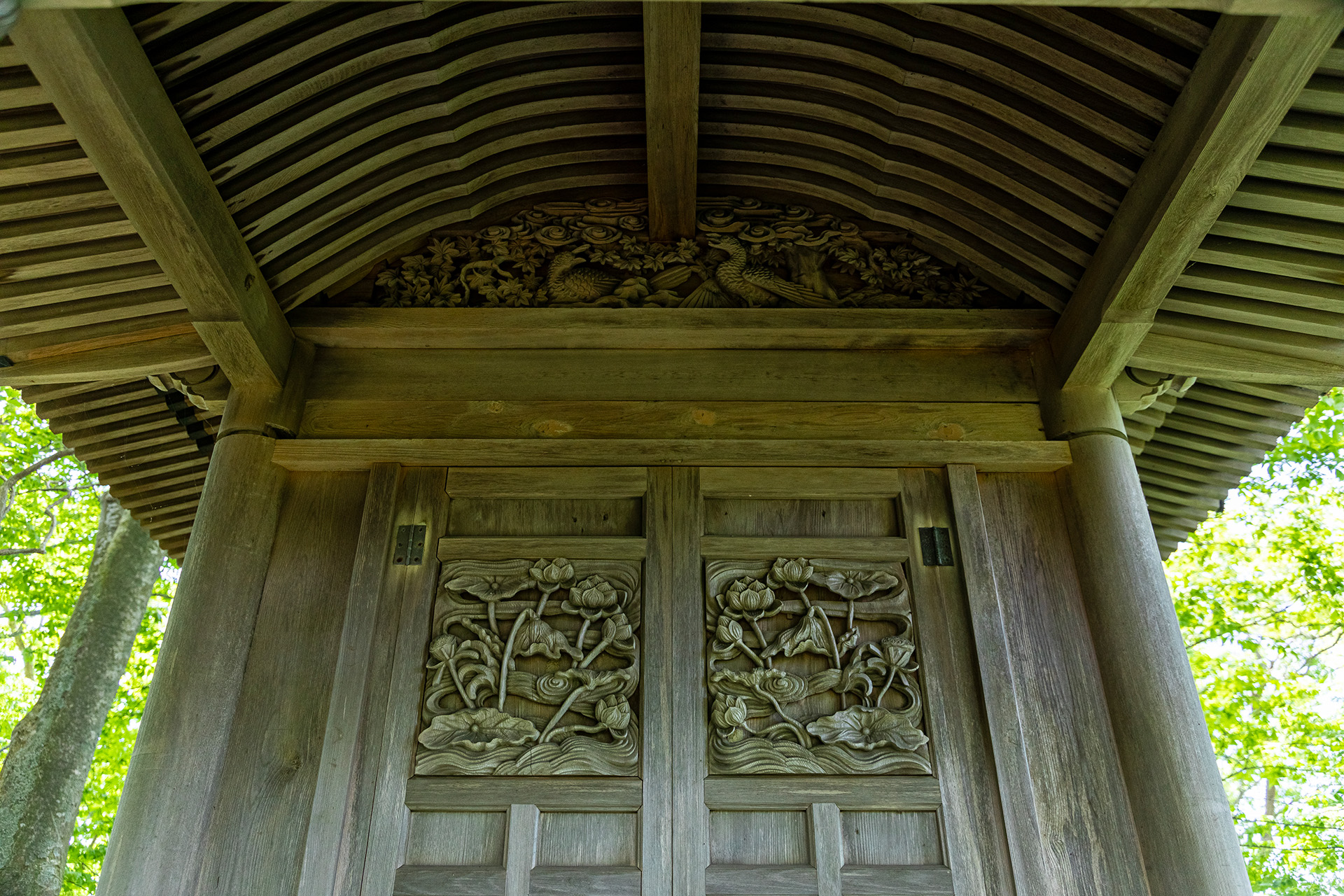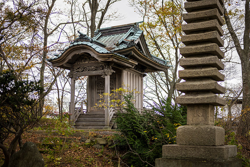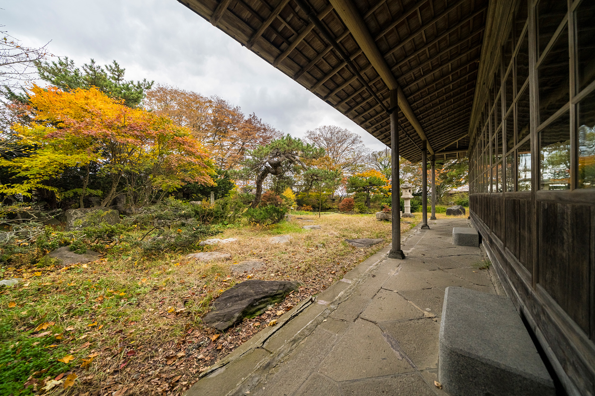 木彫が施された優美な建造物であり、池泉庭園の築山奥に位置する。長勝寺(弘前市)将来とされる厨子および達磨像など、一級の美術品が安置されています。