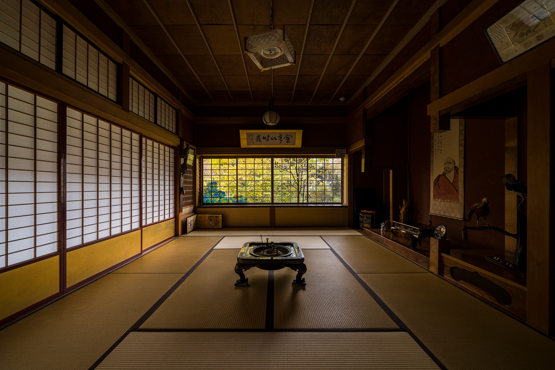 宮越家は、青森県北津軽郡中泊町大字尾別(おっぺつ)に所在する旧家です。屋敷内には、主屋を中心に、文庫蔵・米蔵・離れ「詩夢庵(しむあん)」などの建造物と、「静川園(せいせんえん)」をはじめとする庭園が所在します。いずれも百年前後の歴史を有する文化財ですが、なかでも離れ「詩夢庵」を装飾するステンドグラス作品は、日本におけるステンドグラスの先駆者である小川三知(おがわさんち)によって制作され、彼の最高傑作であると位置づけられています。中泊町では、2018年度より宮越家の学術調査を開始し、2018年12月「宮越家離れ」が町有形文化財(建造物)、「宮越家庭園」が町記念物(名勝)に指定、また2020年7月には「宮越家主屋」「宮越家文庫蔵」「宮越家米蔵」が町有形文化財(建造物)に指定されました。また、2019年度には宮越家住宅・資料保存活用計画を策定し、現在は同計画に基づいた保存活用整備が進められています。
