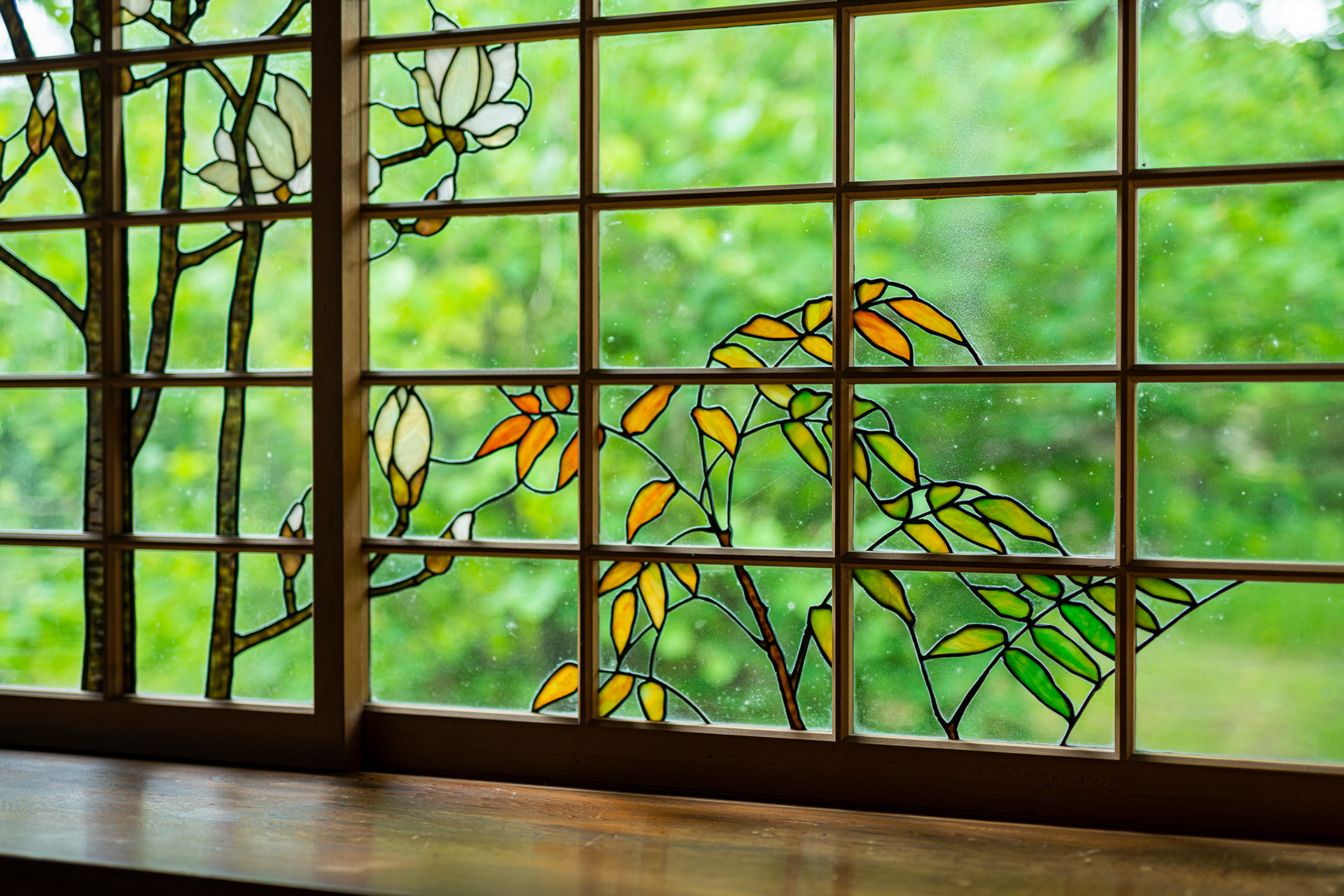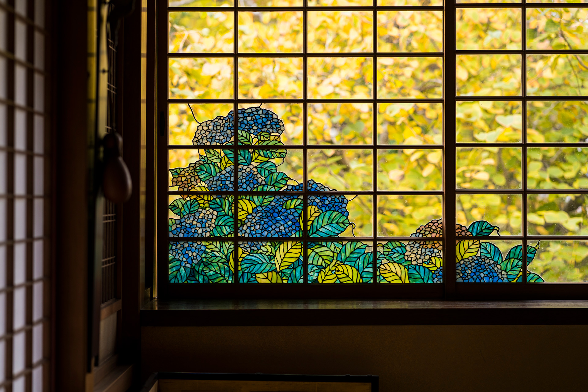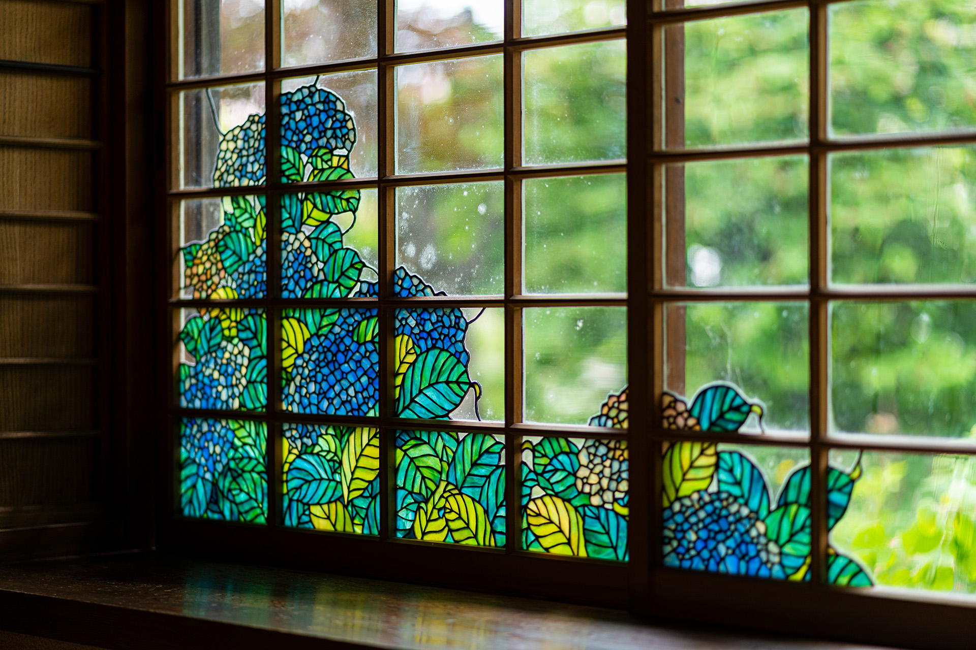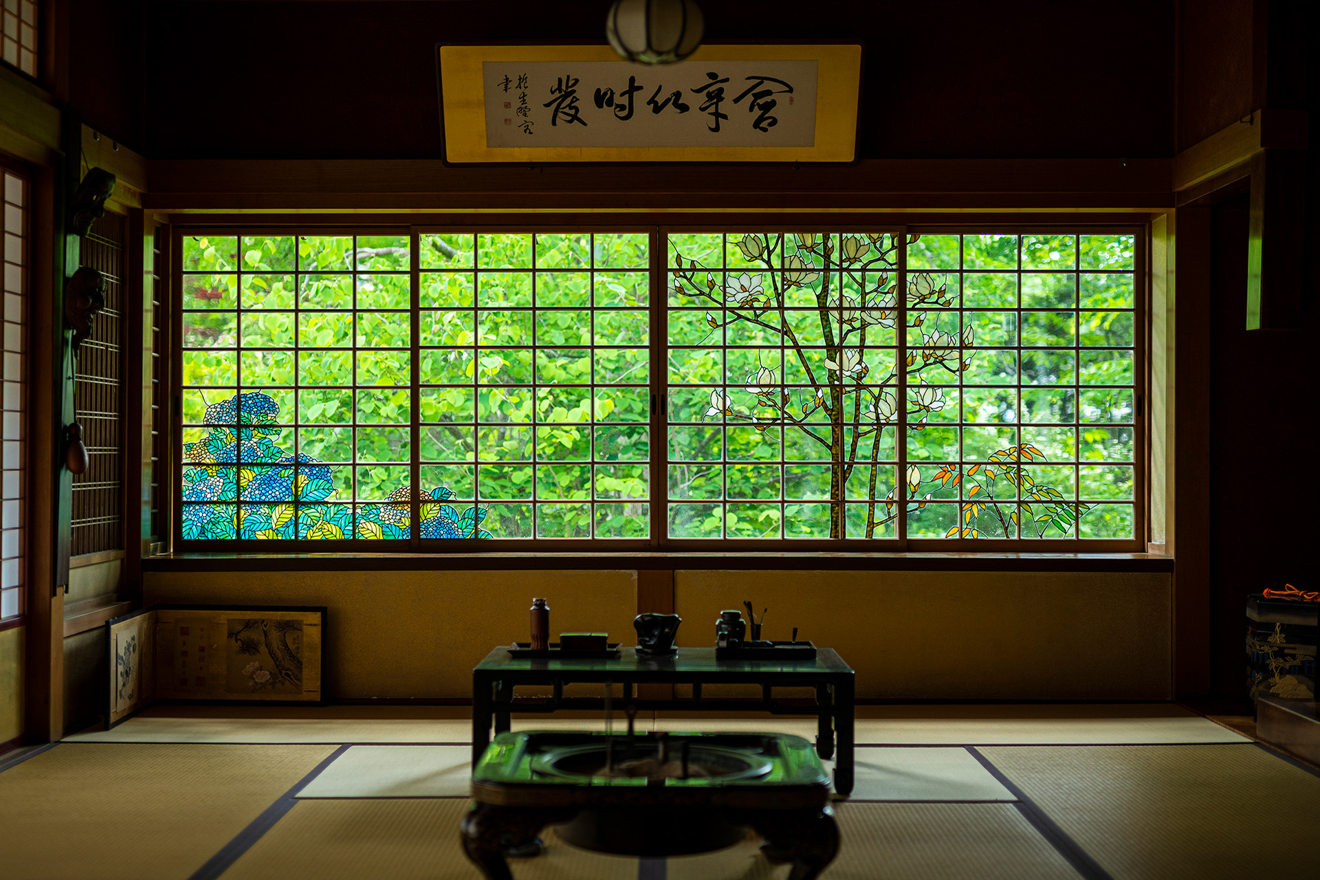 紫色の菖蒲が水辺を彩る夏の静川園。