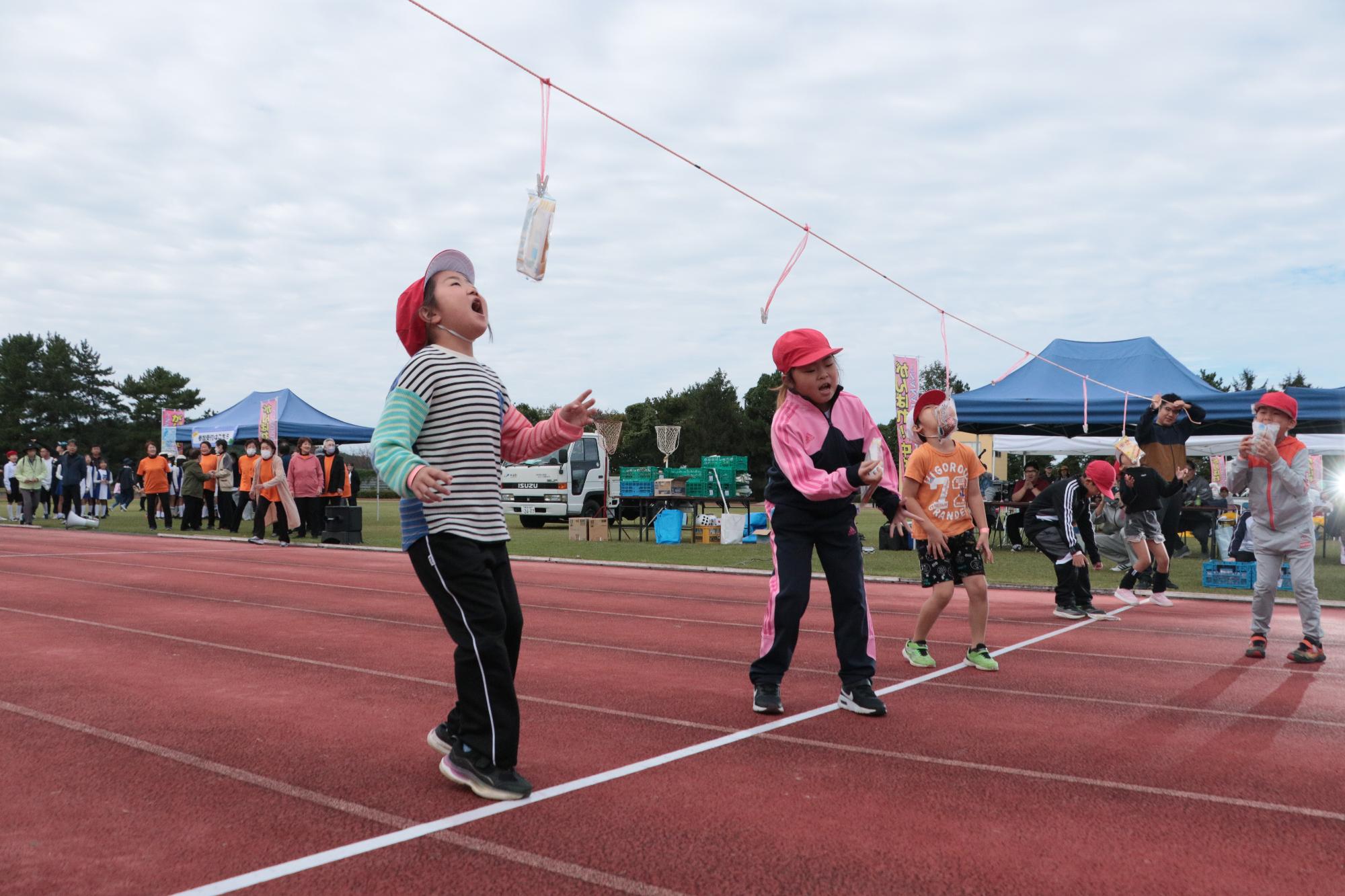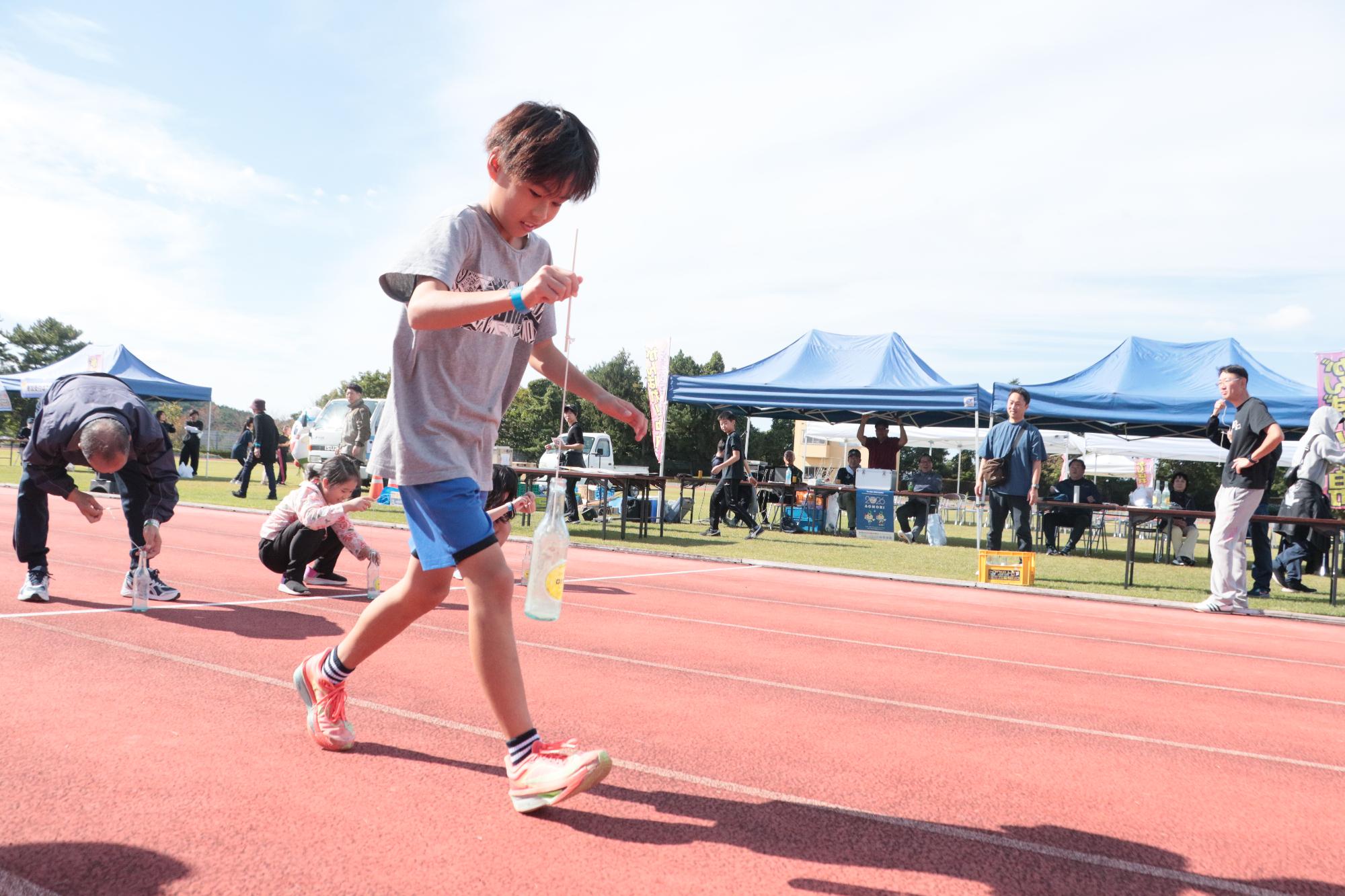 またトラック競技では、定番のパン食い競走や町民大運動会でお馴染みの競技「ビン釣り競走」も復活し、会場は熱気と笑いに包まれました。
