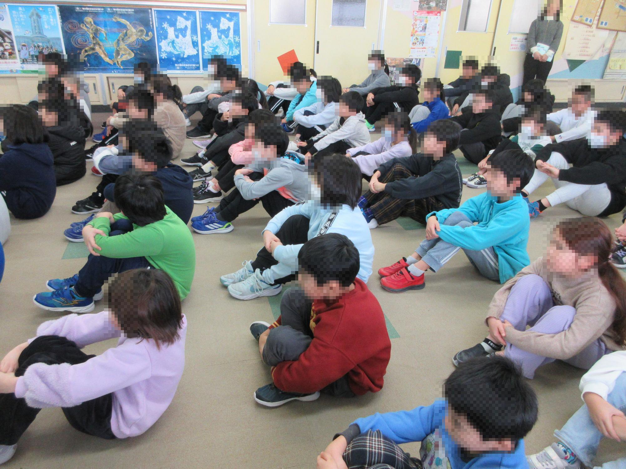 体育館ではなく、暖房が効いた3階図書ランで行ったのですが、校長先生のお話を聞く姿勢もよく、どの子も真剣に聞いていました。