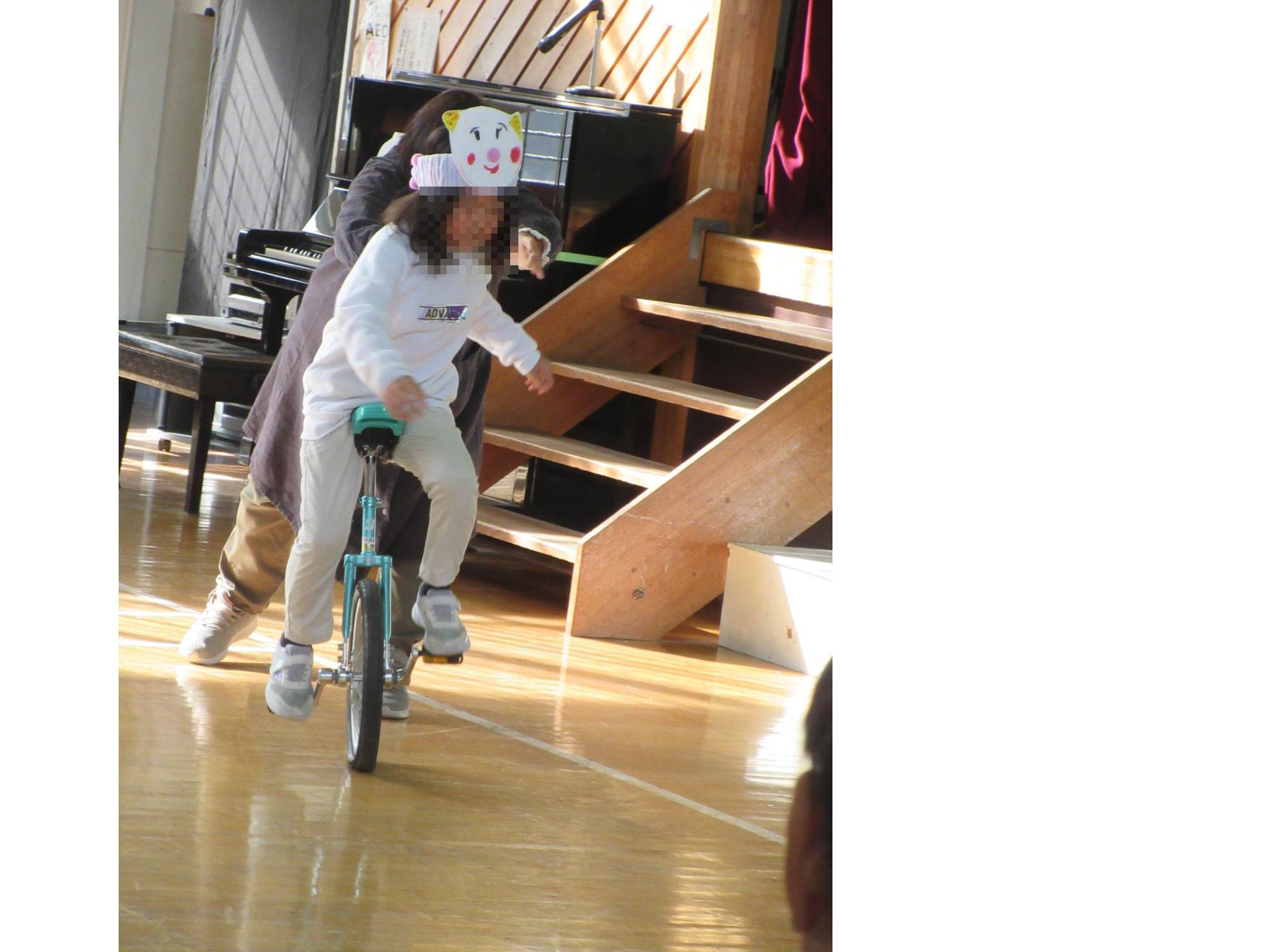 1年生による親子障害。親子仲良くぬいぐるみを運んだり足の上に乗ったりしました。