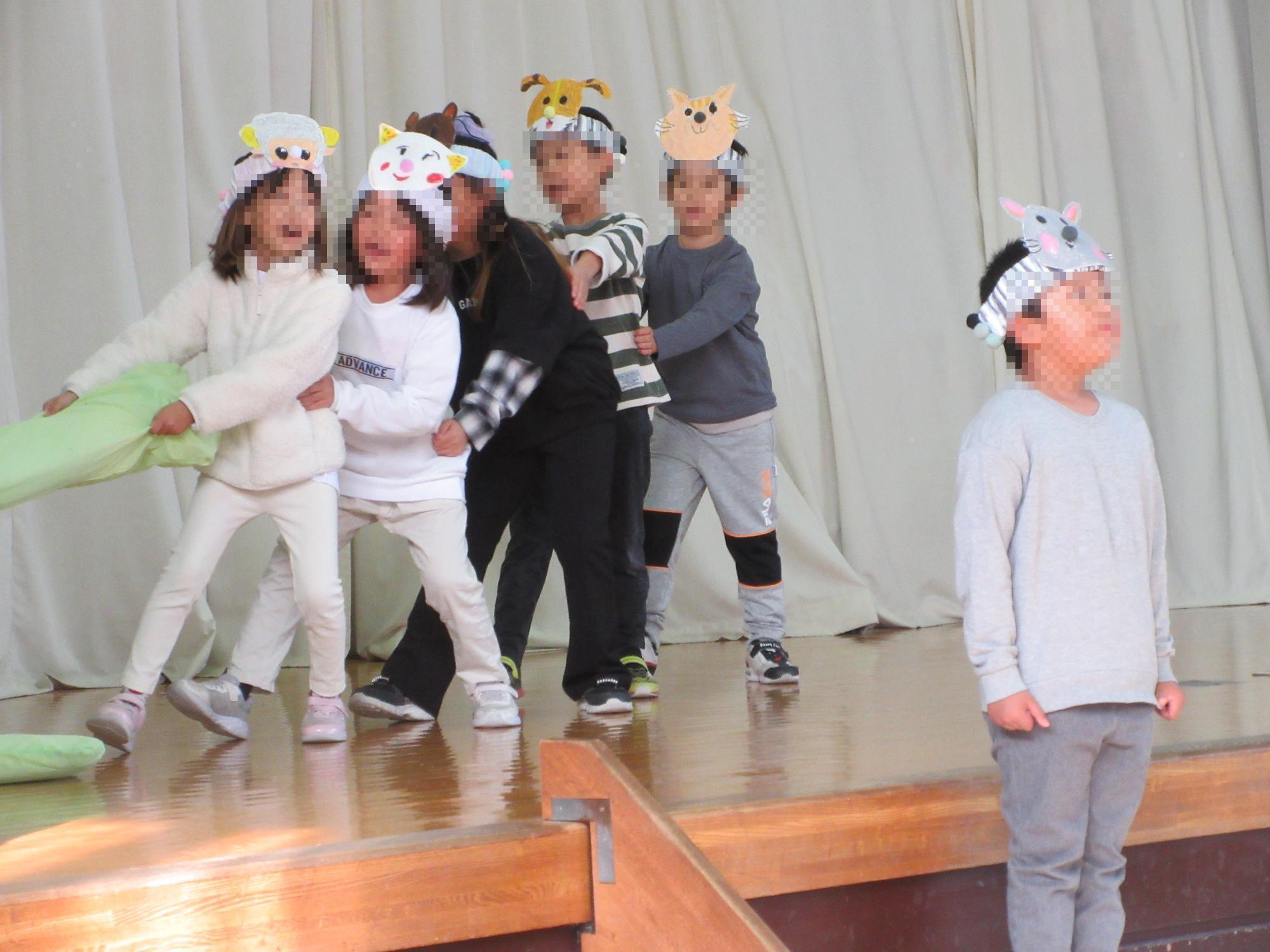 1年生は、それぞれの得意な運動を披露しながら、大きなかぶの劇を発表しました。