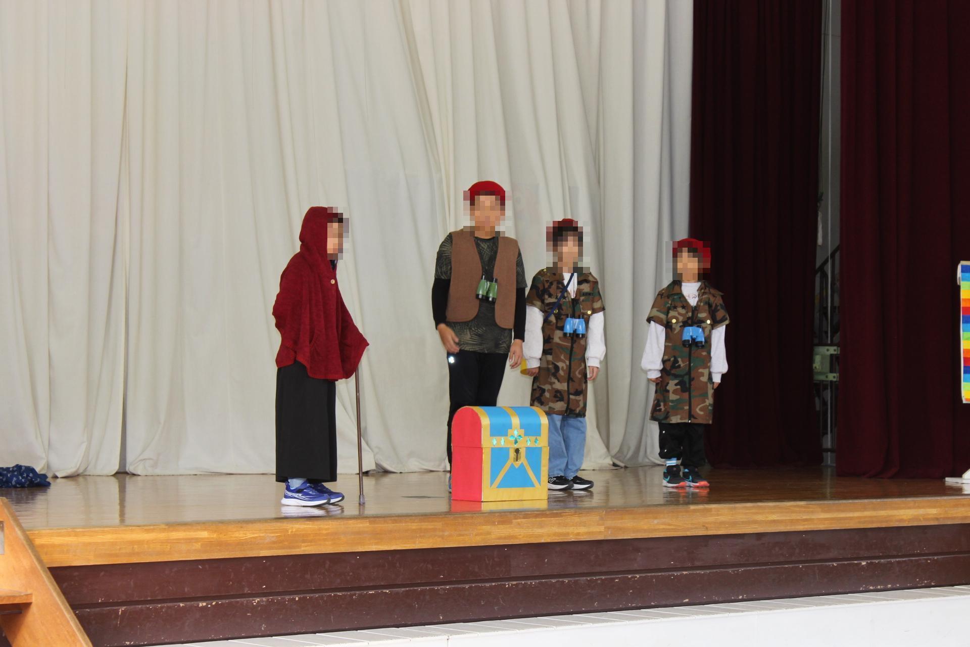 続く4年生の発表は、音楽劇ミュージックワールド。3人の探検隊が様々な国を訪れました。
