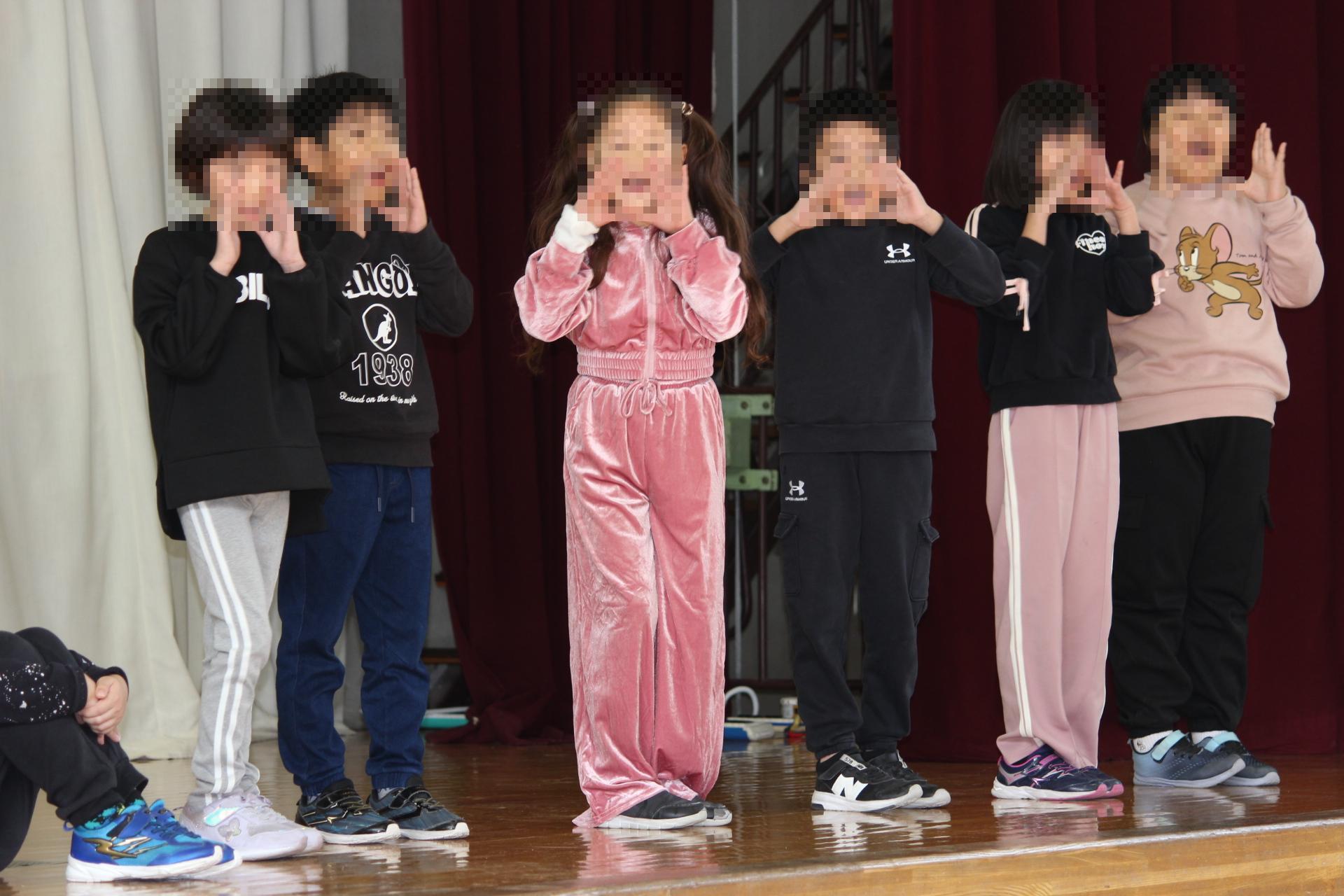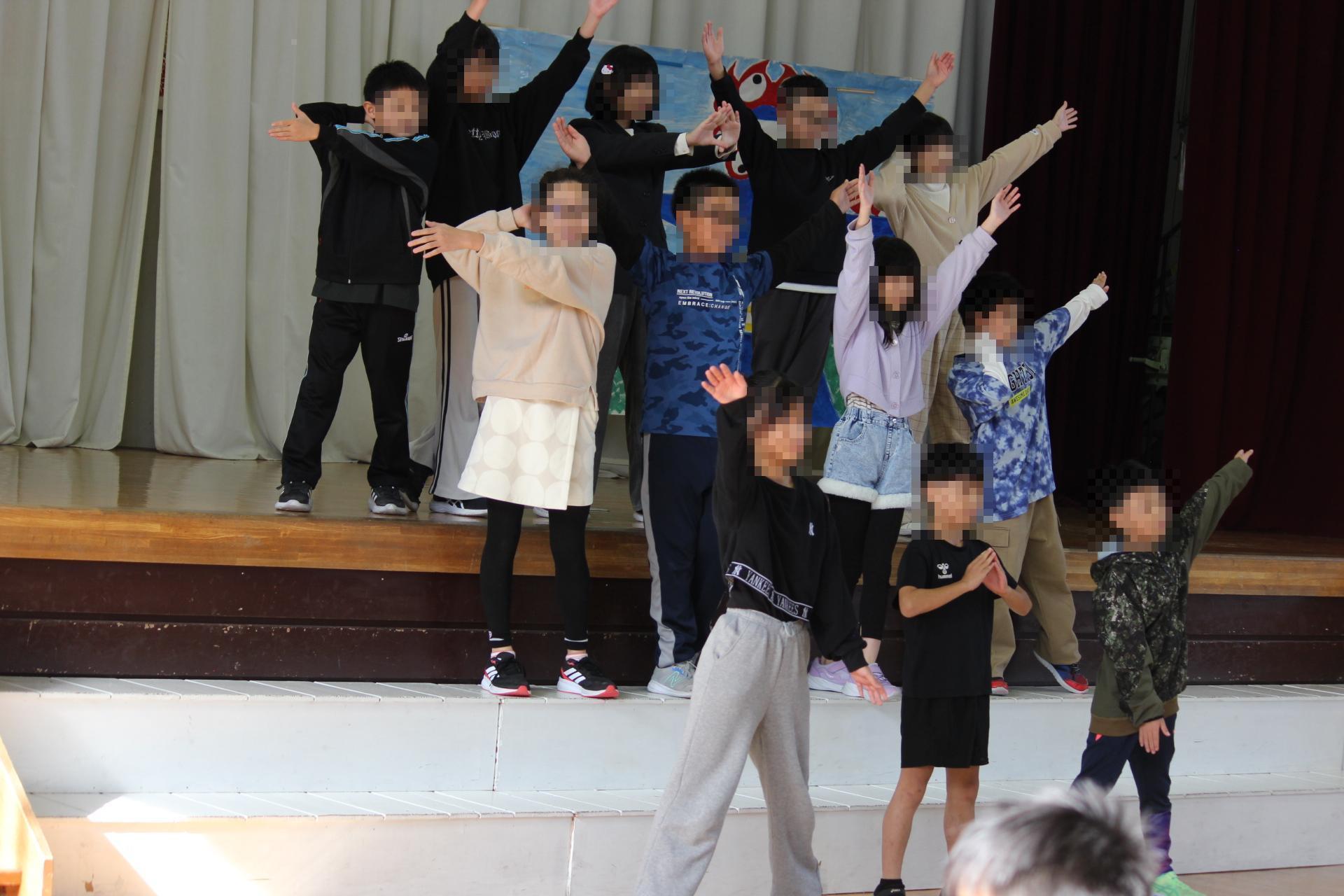 前半の部最後の発表は、2・3年生のぼくたち、ハイ、よろこんで隊。