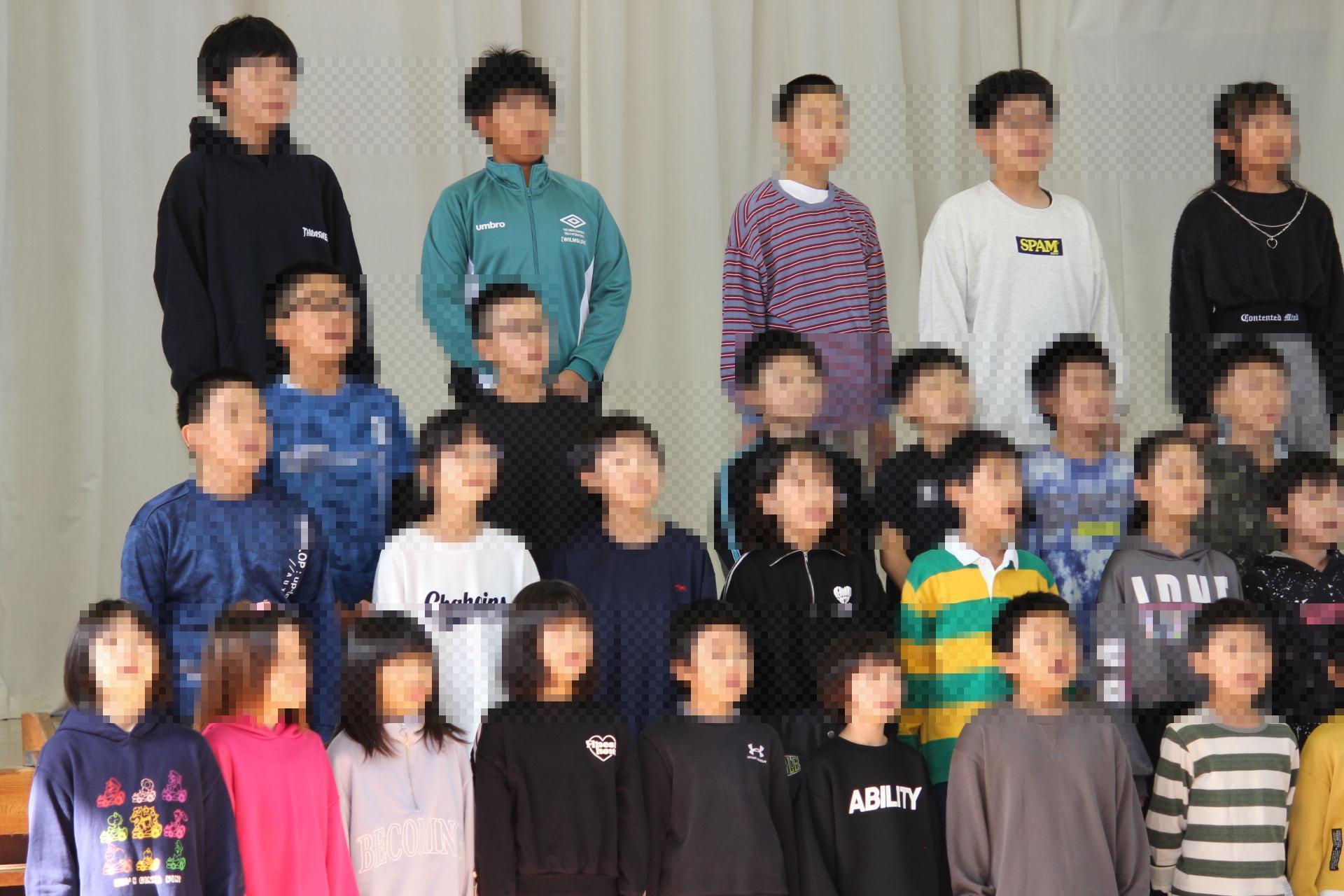 全校児童の聞く姿勢も大変よく、一人一人が真剣に代表児童や校長先生の話を聞くことができました。