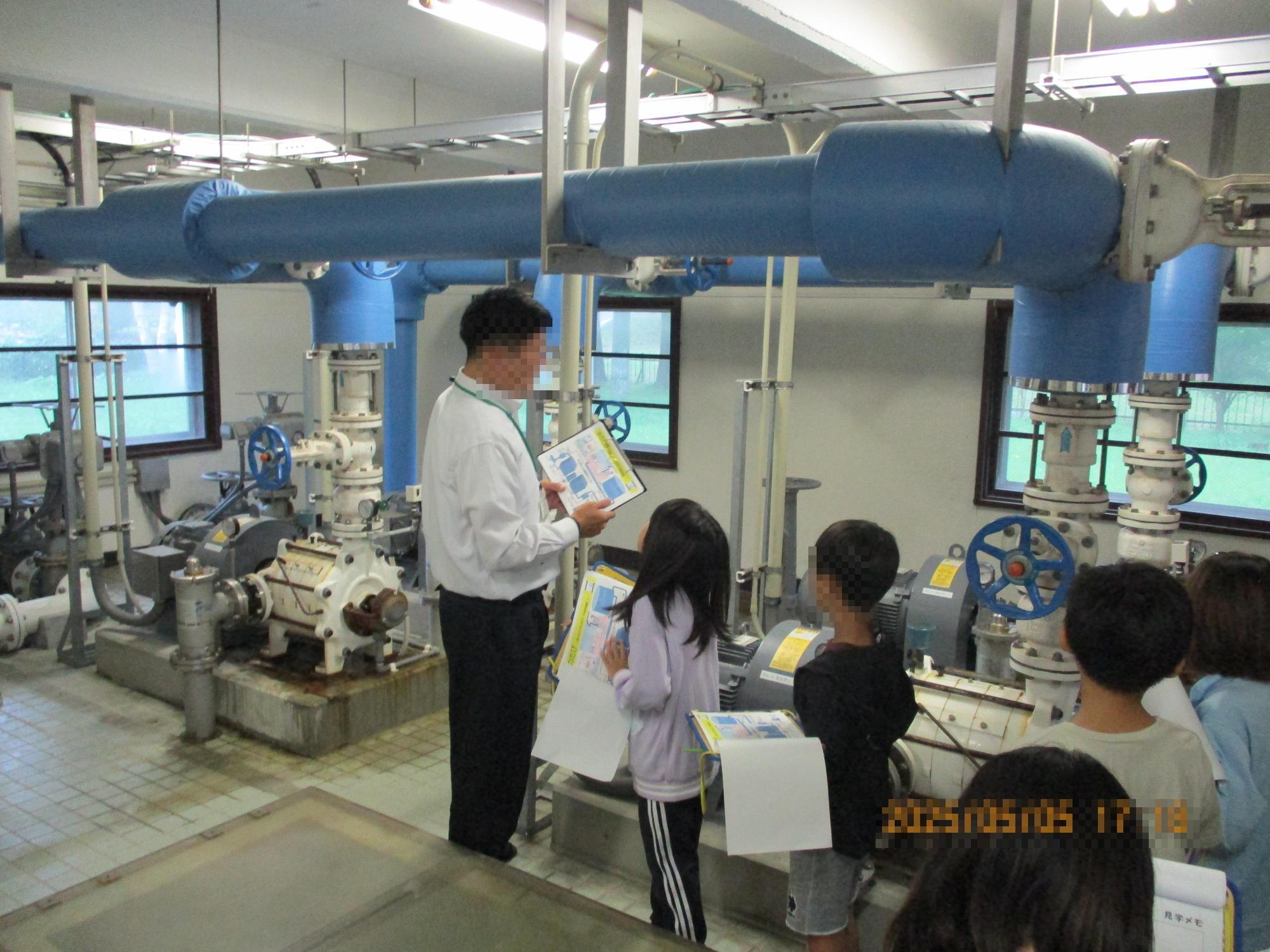 水を送る巨大なポンプや水道水を管理する機械を見学することができました。