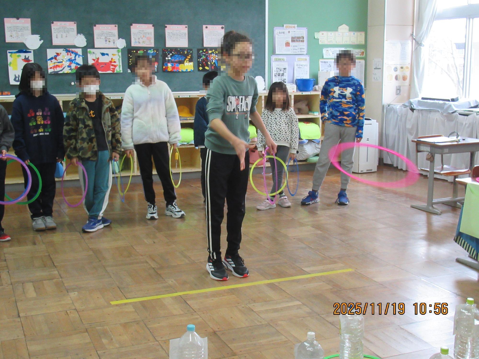 なかよし集会が行われ、縦割り班ごとに6つのゲームに挑戦しました。