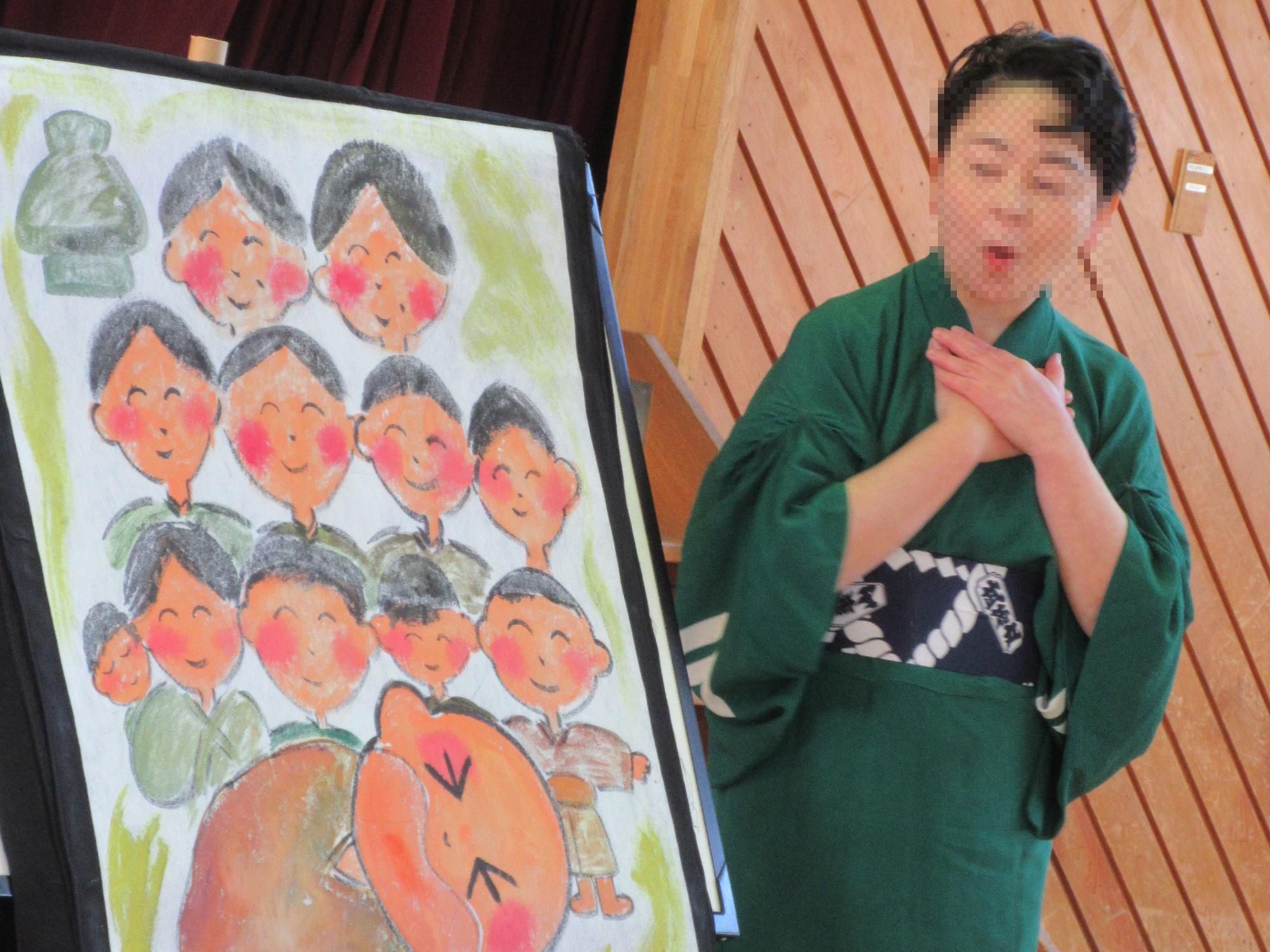 次に、20年以上も武田小学校に来てくださっている方から、3つのお話を読み聞かせしていただきました。