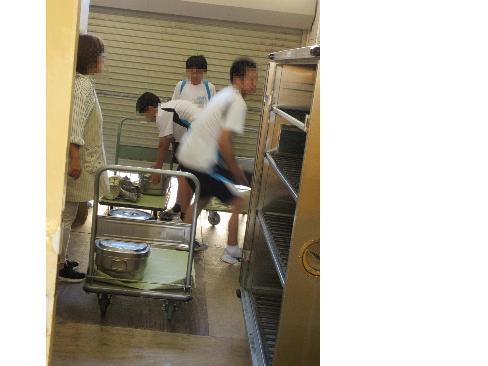 中3男子3名ということで、給食の準備も素早くこなし、各教室の前まで運んでくれました。
