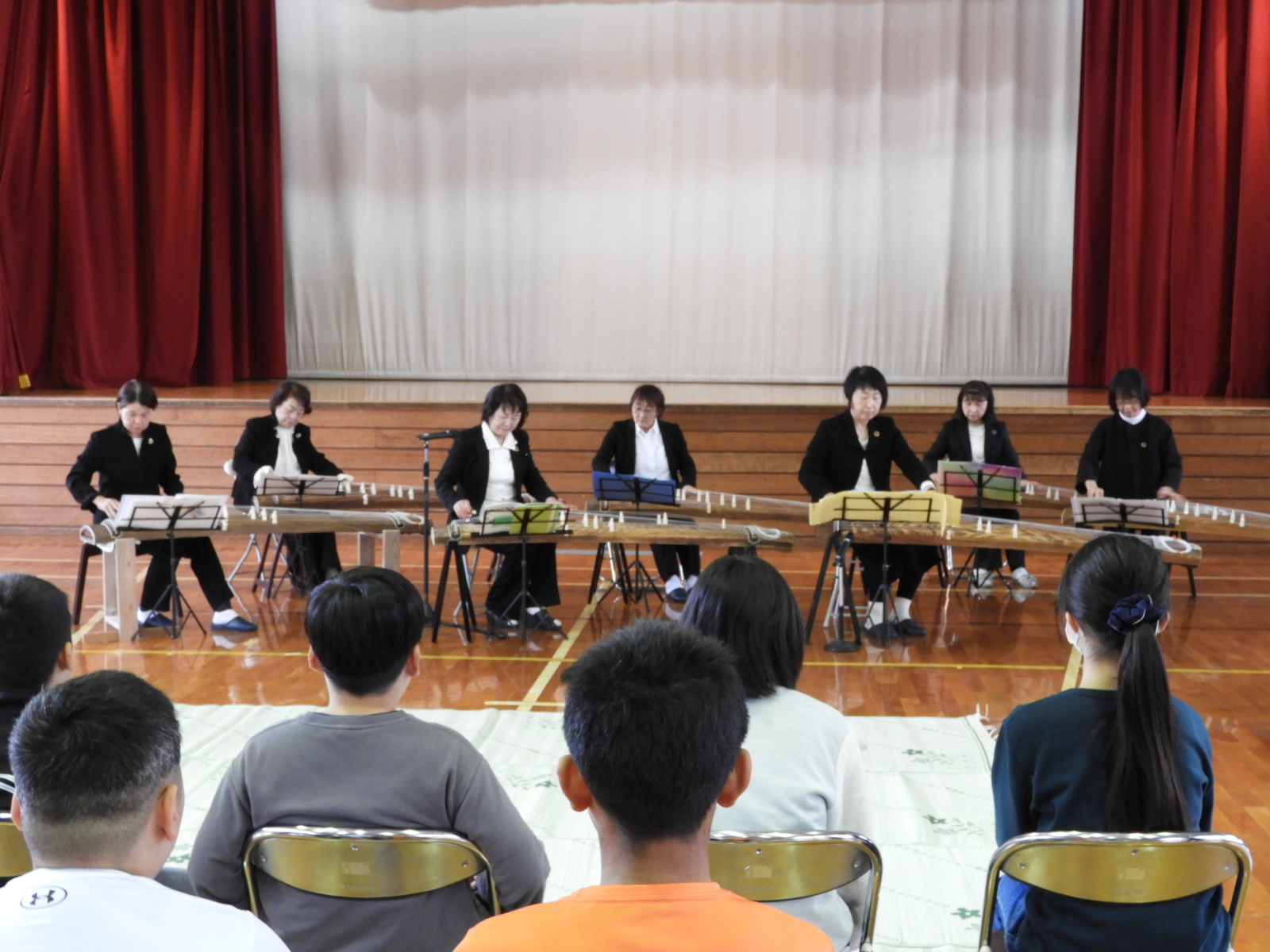 琴の演奏を目の前で初めて聴く子ばかりで、美しい音色に感動していました。