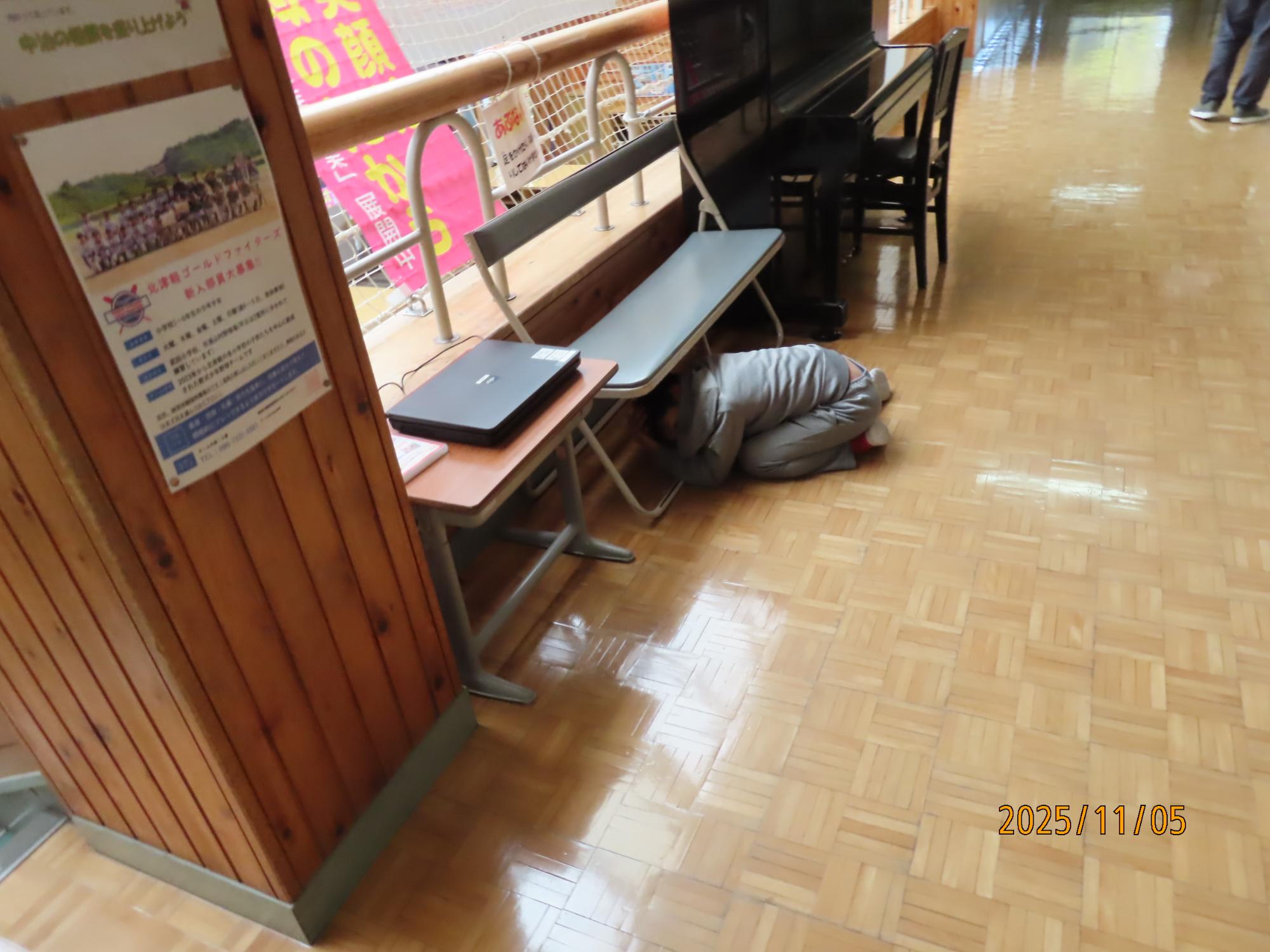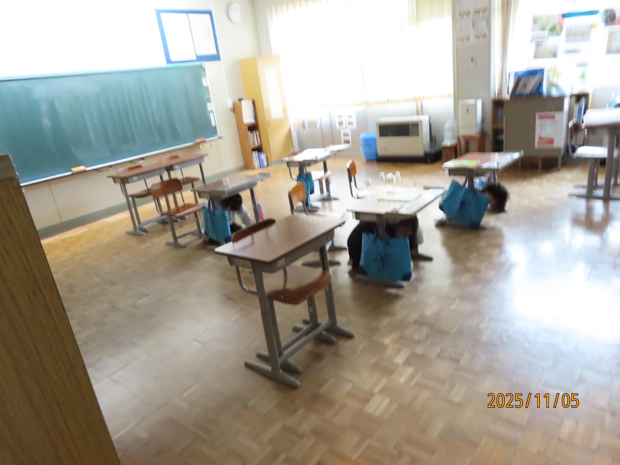 校内の放送に合わせてすばやく自分の身を守る行動がとれました。