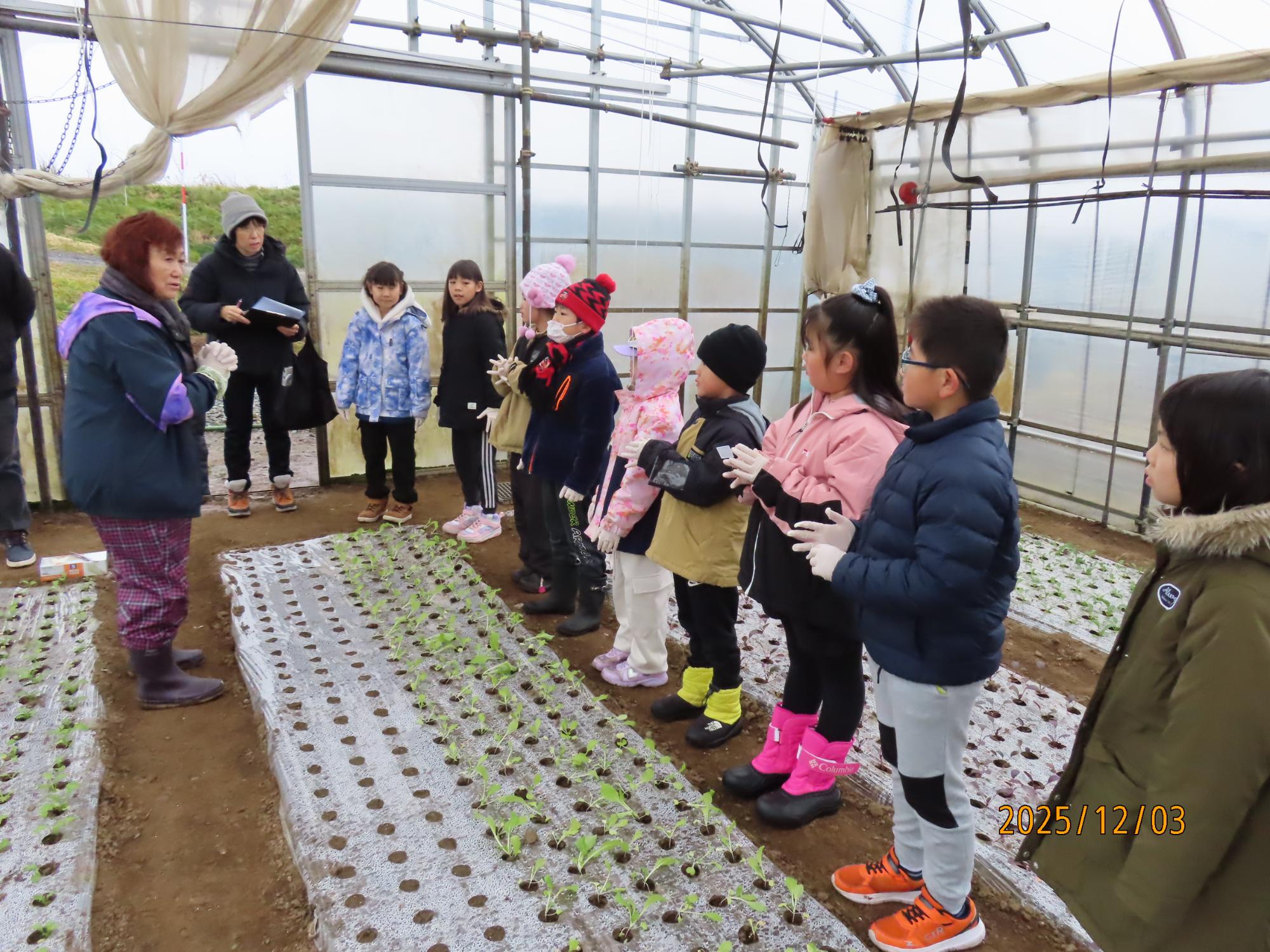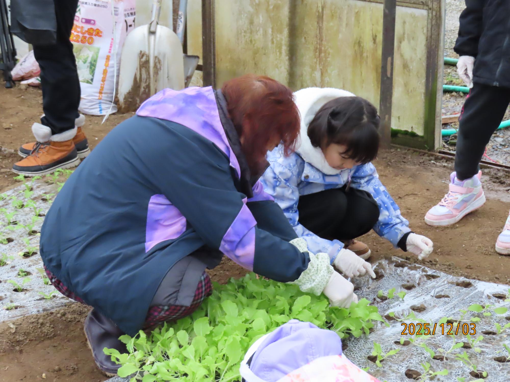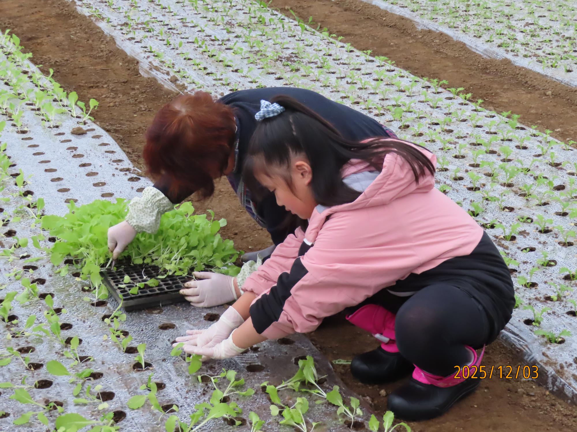 佐藤イネ子さんにご協力いただいて冬野菜の植付体験学習を行いました。