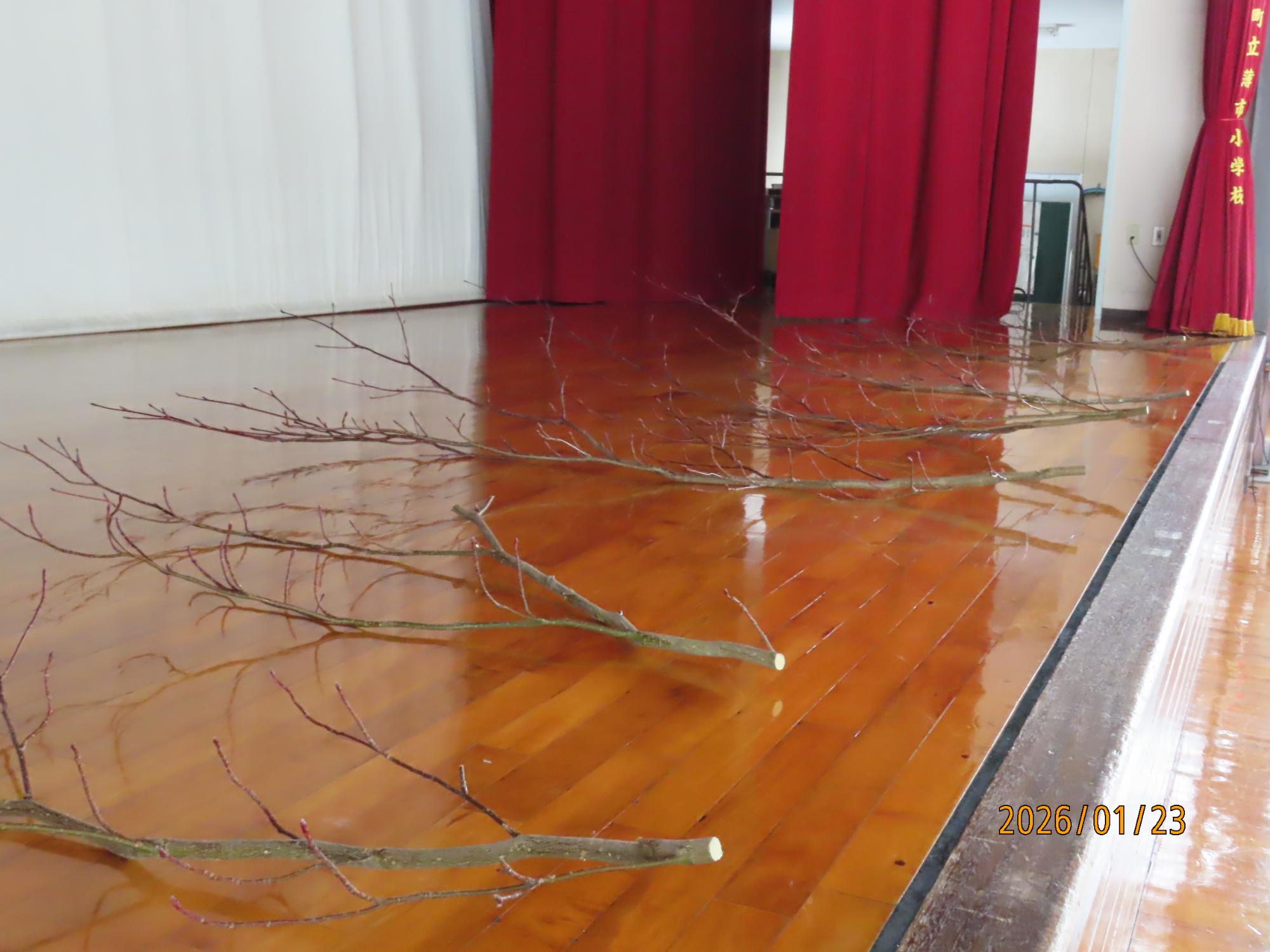 繭玉用に準備したミズキの木。餅つき会は多くの人の手で支えられている行事です。
